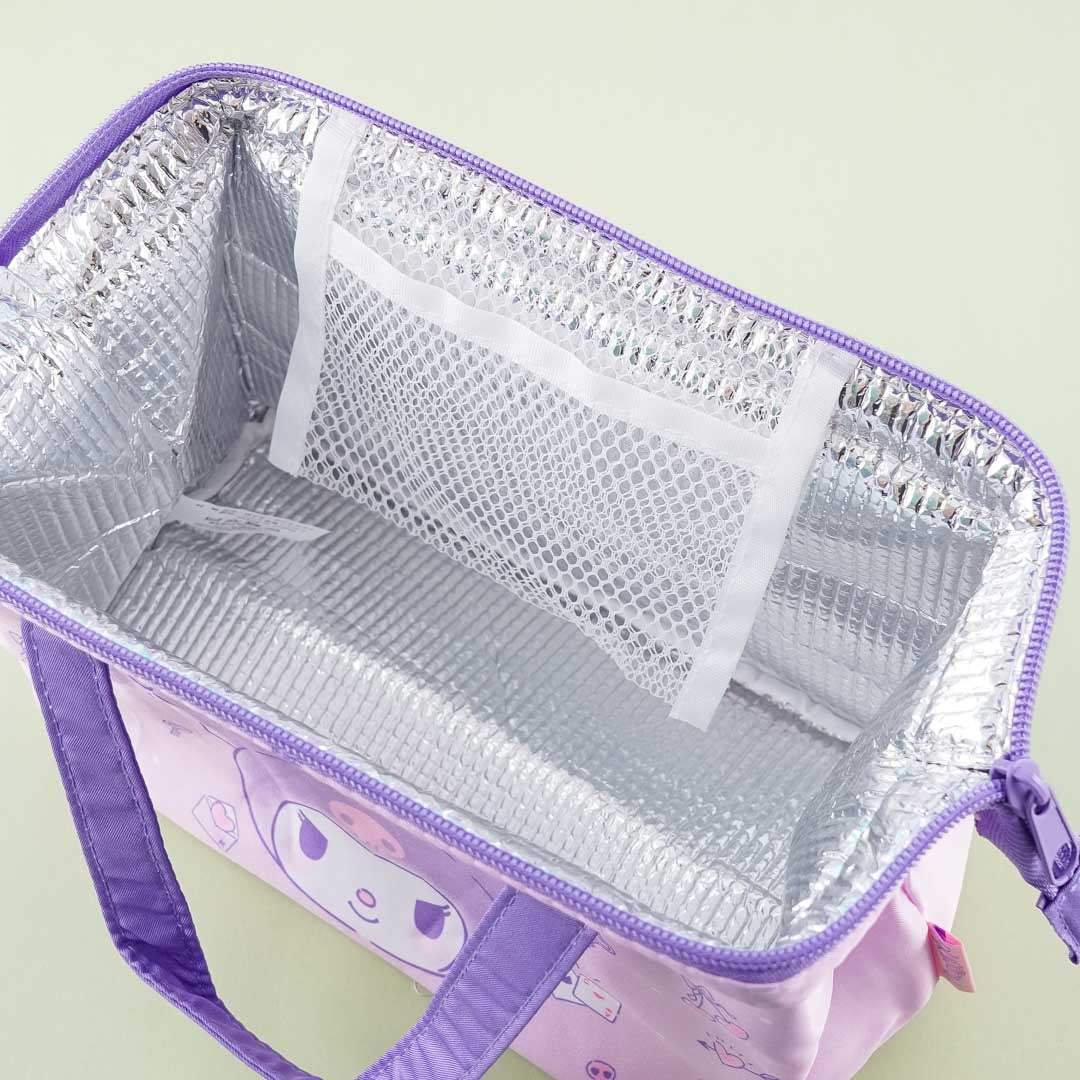 Bring along meals for your picnics with this kawaii lunch bag covered in prints of Kuromi, hearts, cherries, arrows, and other cute things! It has a double zipper closure and its inner portion is made of aluminum vapor deposition material to help keep your meals nice and fresh. This bag also has a mesh pocket for ice packs.