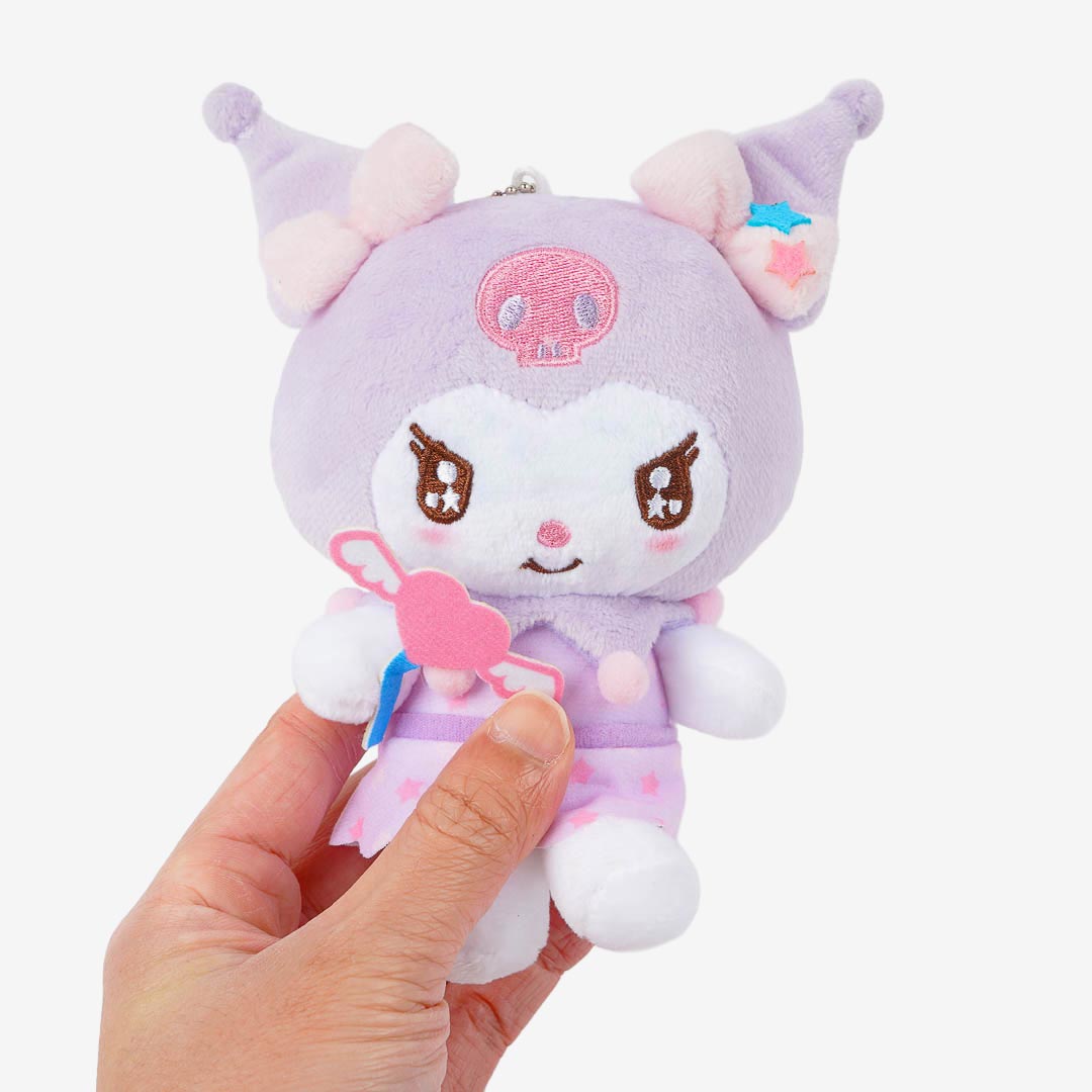 Bring this super cute Kuromi plushie along on your magical adventures! It's wearing a star-printed outfit and holding a heart-shaped wand. This small plushie also comes with a zippered pocket at the back and a removable ball chain.