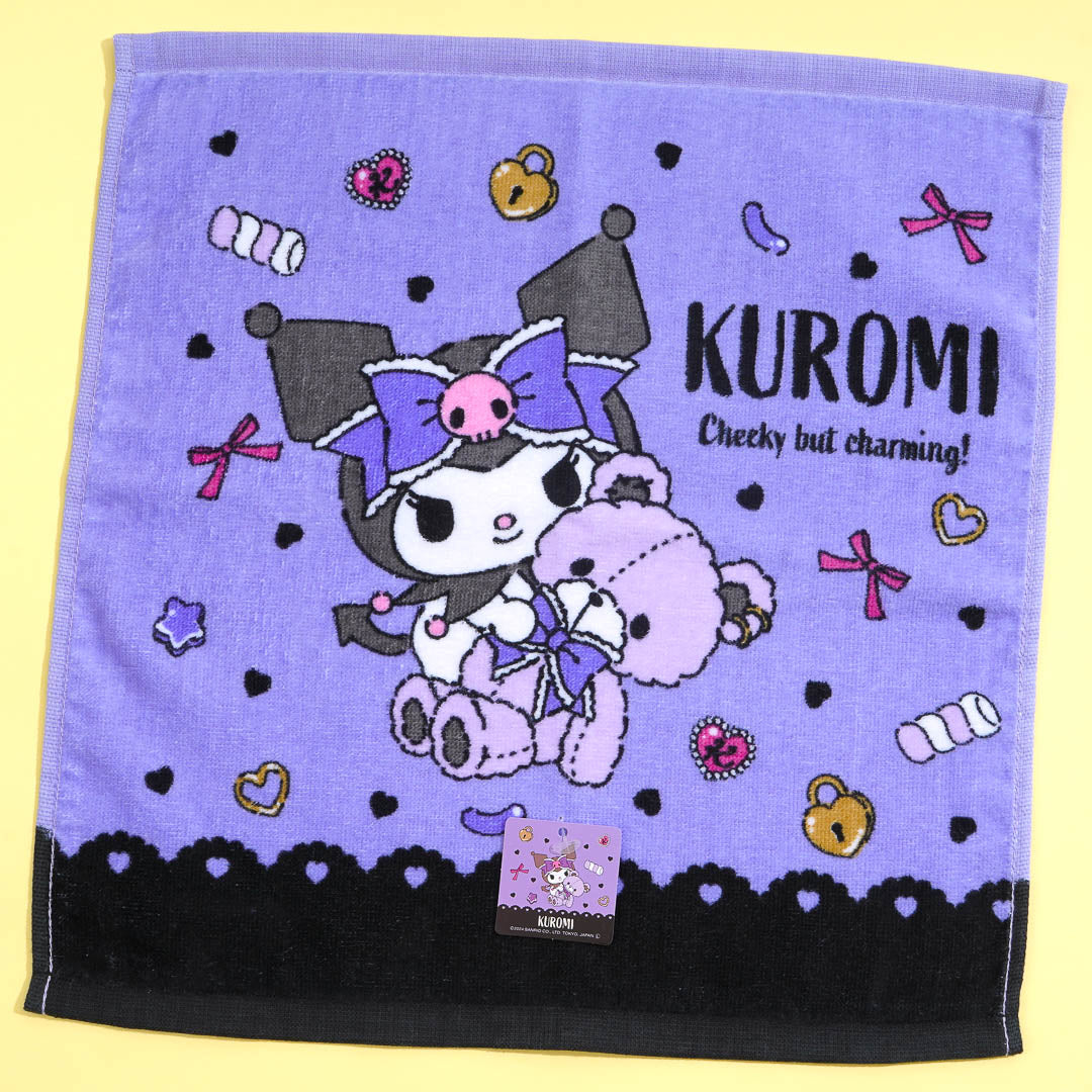 Wipe your hands after washing using this kawaii mini towel! It's decorated with an illustration of Kuromi playing with a pastel-colored teddy bear. This hand towel is made of 100% cotton that's super soft to the touch.