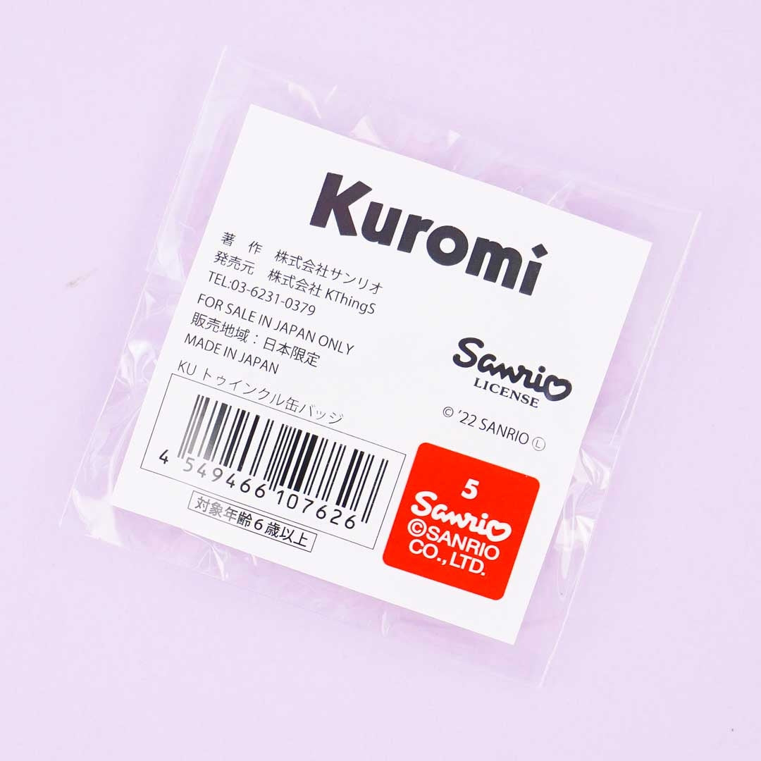 This cute badge features a print of Kuromi with twinkles on her ears. Pin this aluminum badge on your favorite denim jacket or bag!