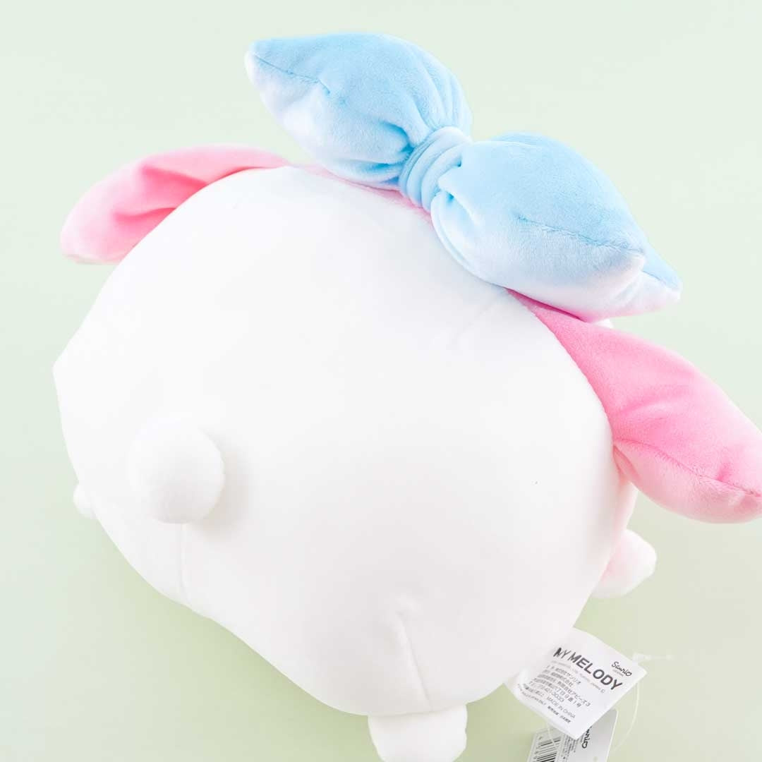 Enjoy playing with this kawaii My Melody plushie that’s doing a nesoberi pose or sprawled down in its stomach! This fluffy medium-sized cutie is wearing a huge bow and can also be stacked on top of other character plushies from the same collection.