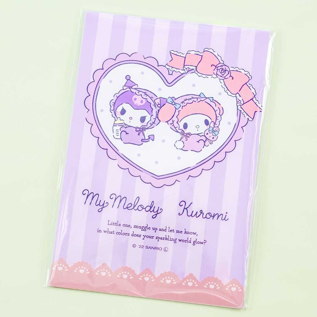 Send special messages to your buddies using this cute set of postcards! They feature prints of Kuromi and My Melody as babies. Each postcard showcases a different design.