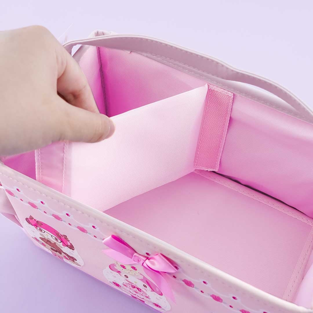 Keep your things organized by arranging them in this super kawaii basket. It features prints of My Melody wearing different kinds of cute outfits! It has multiple pockets and partitions that you can use. This basket also has handles! You can keep this basket when you don't need it by folding it into a smaller size.