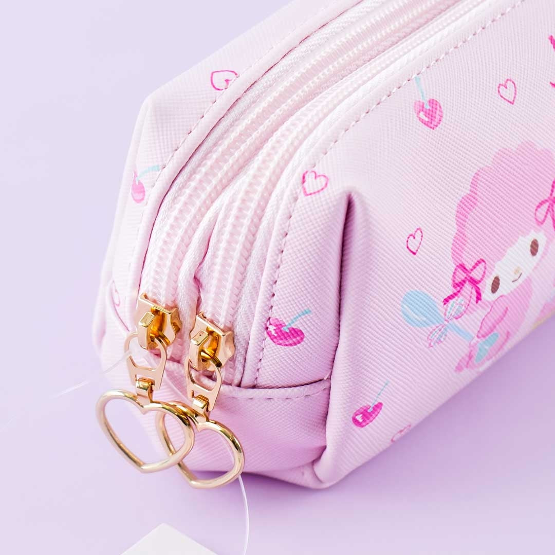 This cute pencil case features a print of My Melody and My Sweet Piano having a party! Use it to store all your writing tools like pens, pencils, and more. It has two compartments and two zipper closures with heart-shaped charms.