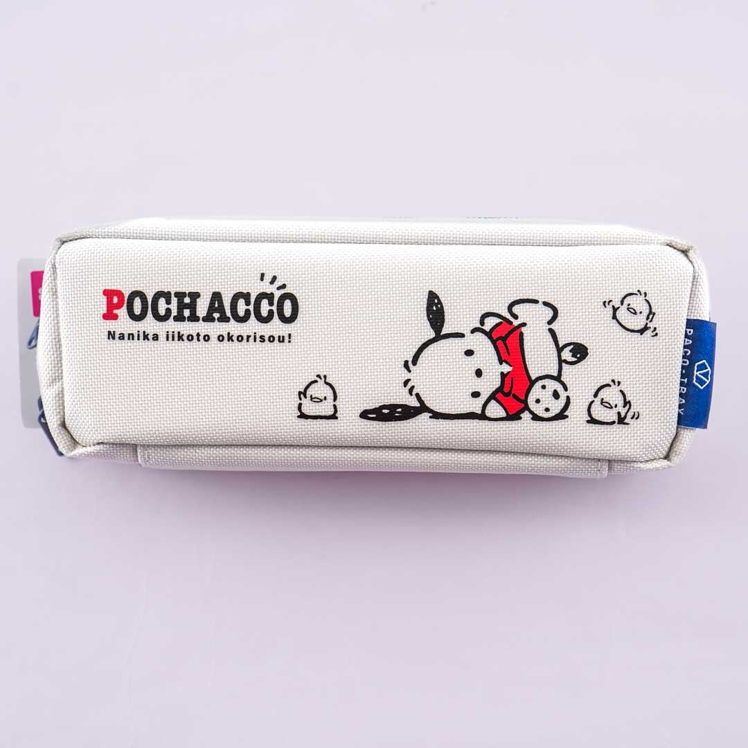 This super cute pen case features Pochacco playing soccer with his friends. The case opens wide and becomes a tray so you can organize your writing essentials easily. There are 3 partitions included.