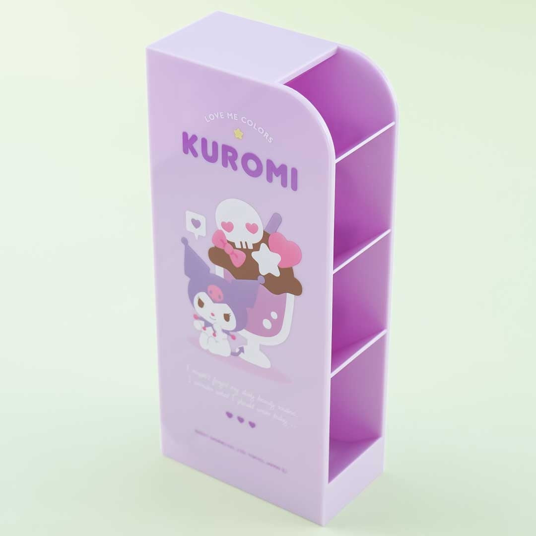 Keep your scissors, cutter, and other art tools in this super cute tower stand! It features prints of Kuromi with a giant sundae that has gothic lolita accents! The slim organizer chest is made of sturdy plastic and has four separate compartments.
