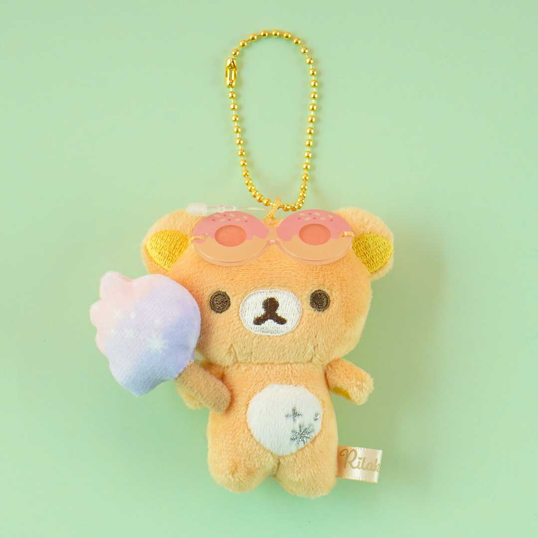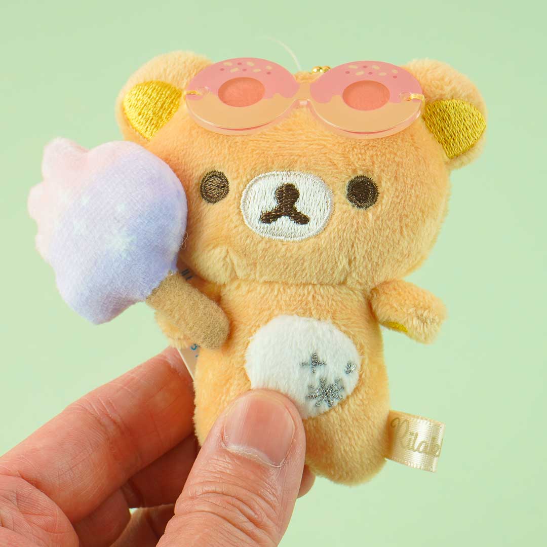 This super cute Rilakkuma plushie charm is wearing a pair of donut-shaped sunglasses and is holding a cotton candy stick! Kawaii-fy your favorite shoulder bag by attaching this.